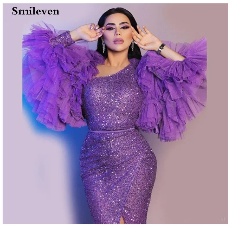 Smileven 2 шт. Русалка вечернее платье с длинными рукавами и из мягкой ткани с блестками вечернее платье торжественное платье вечерние платья сексуальные платья для выпускного бала, для сцены
