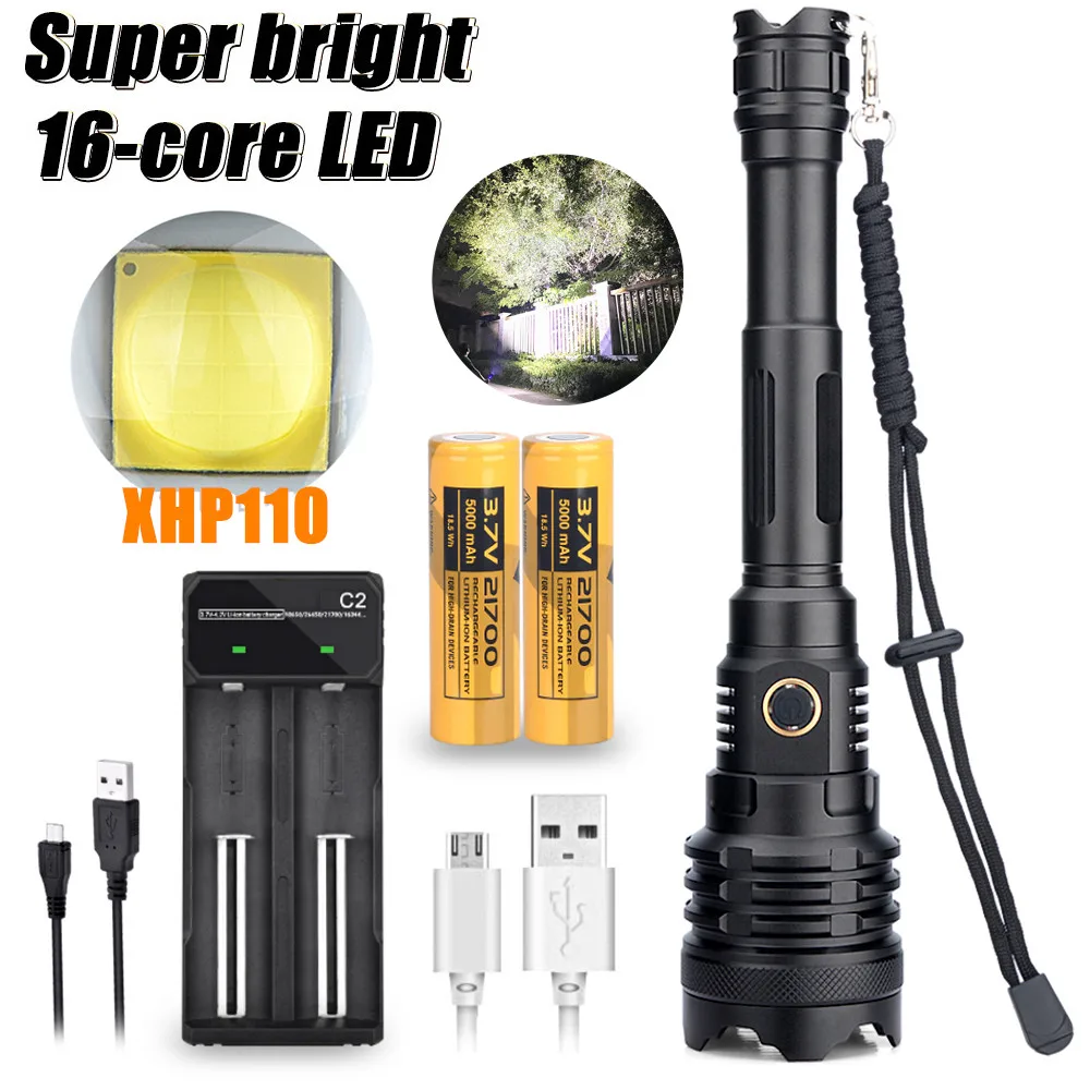 XHP110 Тактический светильник для вспышки, высокий люмен, 16 ядер, XHP светодиодный перезаряжаемый 21700 аккумулятор, светильник для вспышки, Zoom, уличный охотничий светильник для кемпинга