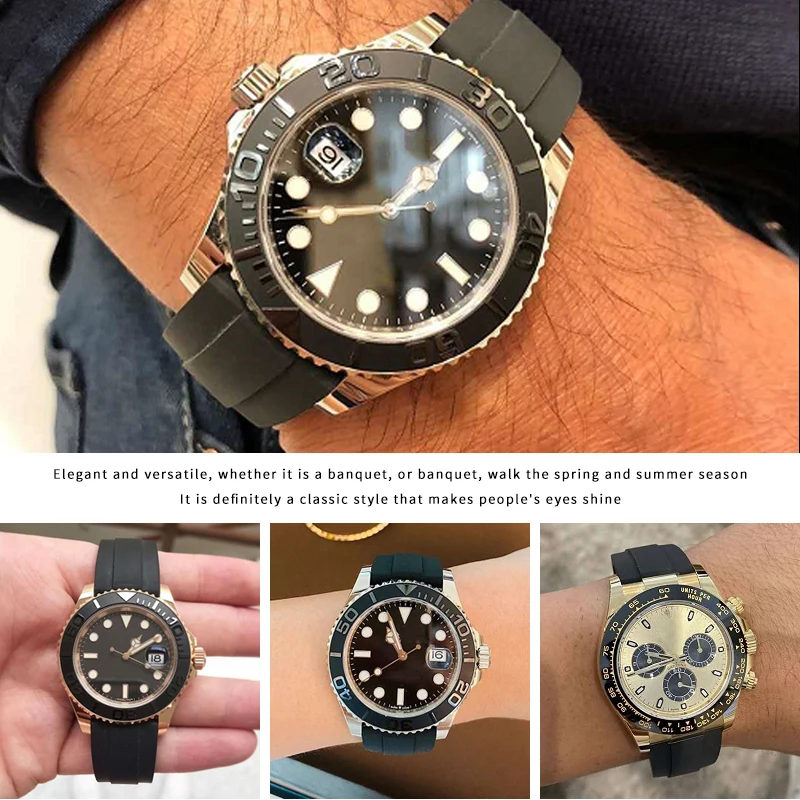 Сменный резиновый ремешок 20 мм 21 мм для часов Rolex Daytona yachm...