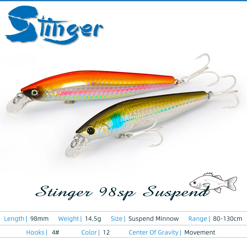 Характеристики продукта:1. Оборудование новой системы движения центра тяжести из вольфрамовой стали, центр тяжести автоматически отскакивает для точного управления движением в воду.2. Благодаря отличной дистанции полета вы можете смело ловить рыбу, до которой не добраться раньше3. Он быстро реагирует на работу удочки, создавая гибкую позу для плавания, обладающую высокими показателями плавания.4. Пригласите рыбу со стуком5. 3 крючка для соленой воды, хорошее проникновение и антикоррозийные свойства, не дает рыбам шанса на побег.6. Картина в виде рыбьей чешуи создает ощущение, что рыба с ума сходитДетали продукта:1. Название: DW86 STINGER2. Тип: подвесной гольян жесткая приманка для рыбалки3. Длина: 98 мм4. Вес: 14,5 г5. Диапазон: 80-130 см6. Крючки: 3 крючка для соленой воды7. Цвет: Col.A Col.B Col.C Col.D Col.E Col.F Col.G Col.H Col.I Col.J Col.K Col.L8. Центр тяжести: система движения центра тяжести из вольфрамовой стали9 посылка: Индивидуальная коробка