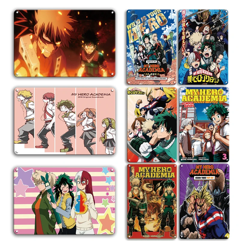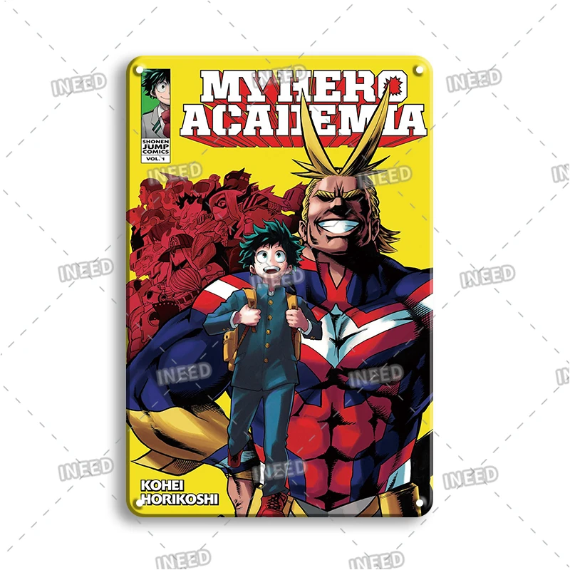 Аниме и манга мой герой академический знак на металлической пластине винтажная японская анимация оловянные постеры роспись Настенный декор наклейки домашний декор