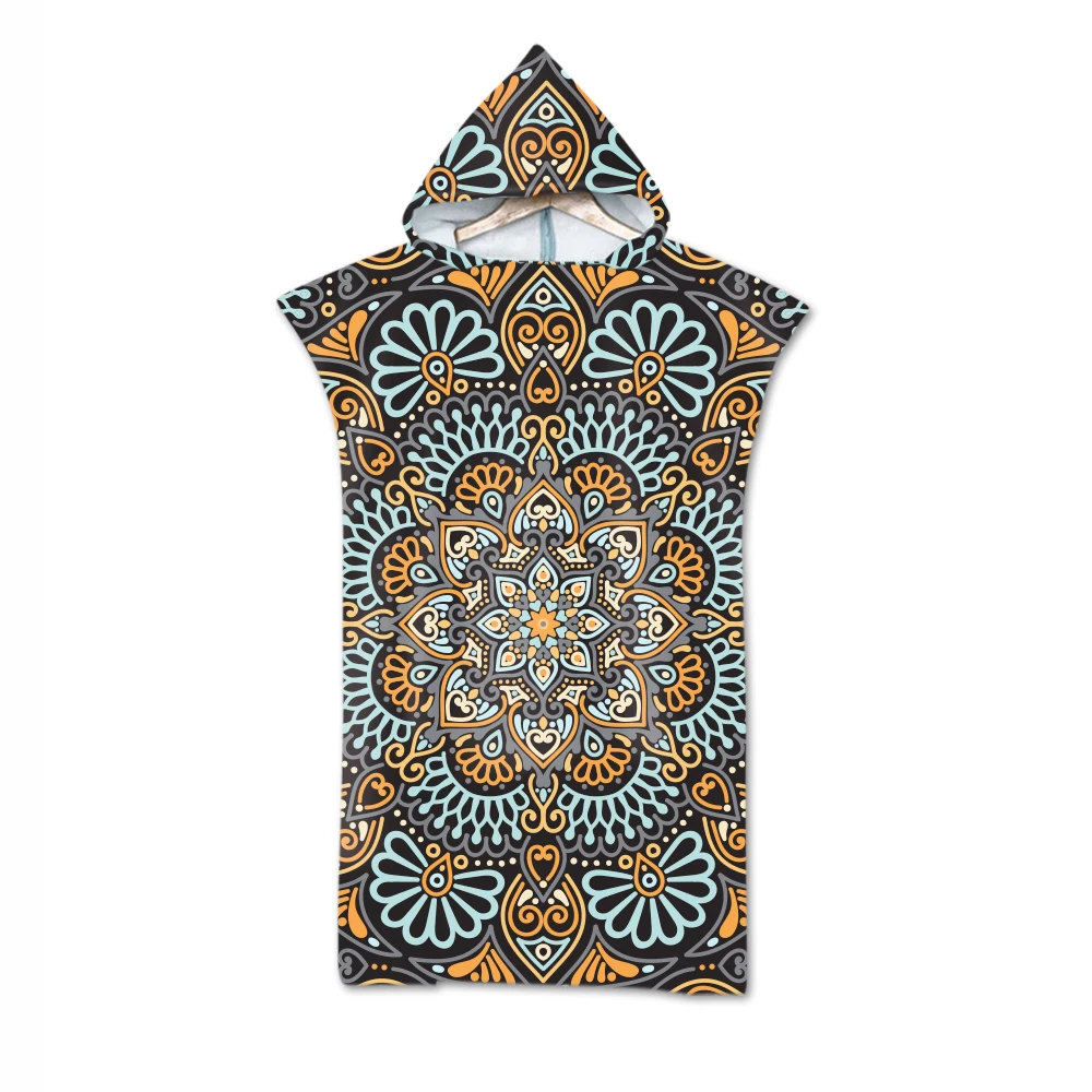Пляжное полотенце с капюшоном и принтом мандалы из микрофибры, быст...