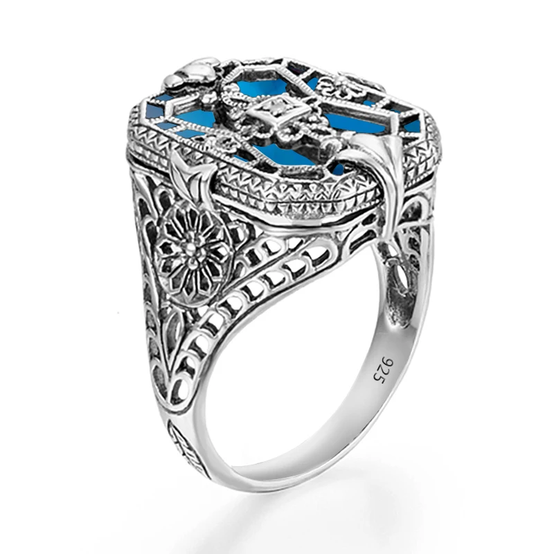 Женское кольцо в готическом стиле Szjinao, кольцо из 100% 925 пробы с серебряным синим топазом, большие ювелирные украшения, вечерние кольца