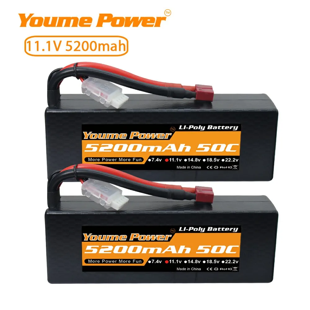 Литий-полимерный аккумулятор Youme 3S, 2 шт., 11,1 В, 5200 мА ч, штекер XT60, Жесткий Чехол для TRX 18, для внедорожника, FPV, дрона, Aiplane, лодки, радиоуправляемых частей 50C