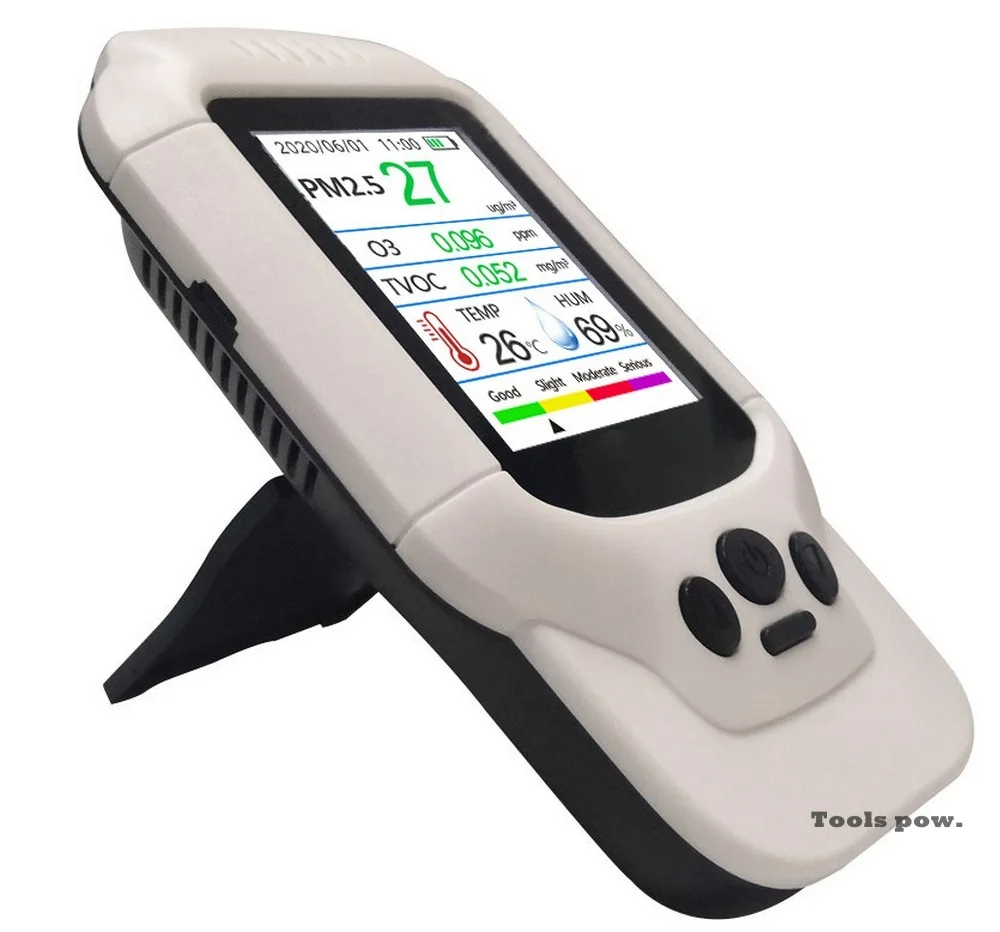 Этот продукт является многофункциональным датчик качества воздуха, который может обнаруживать общего содержания озона (O3) летучих органических соединений, диагностики твердых частиц <2,5 мкм (PM2.5/1,0/10), характеристики температуры и влажности, часов и записи. Как научное устройство обнаружения качества воздуха, он сочетает в себе несколько датчиков воздуха со встроенными датчиками. Вентилятор может контролировать Озон (O3), общее количество летучих органических соединений (TVOC), PM2.5/1,0/10, его цифровой температуры и влажности на ЖК-дисплее.