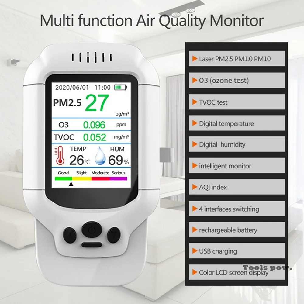 Портативный озонометр, многофункциональный TVOC PM2.5 монитор качес...