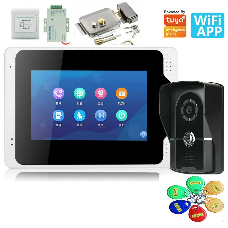 Tuya APP control 7 дюймов проводнойбеспроводной Wifi RFID видео дверной звонок Домофон система входа + ID Брелоки + Электрический замок