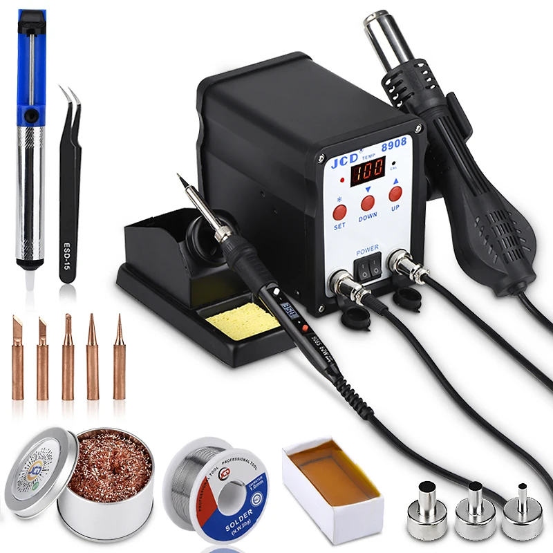 JCD паяльная станция 8908 сварочная ремонтная машина 750 Вт 2 в 1 паяльник с Фен SMD BGA паяльная ЖК-цифровая станция