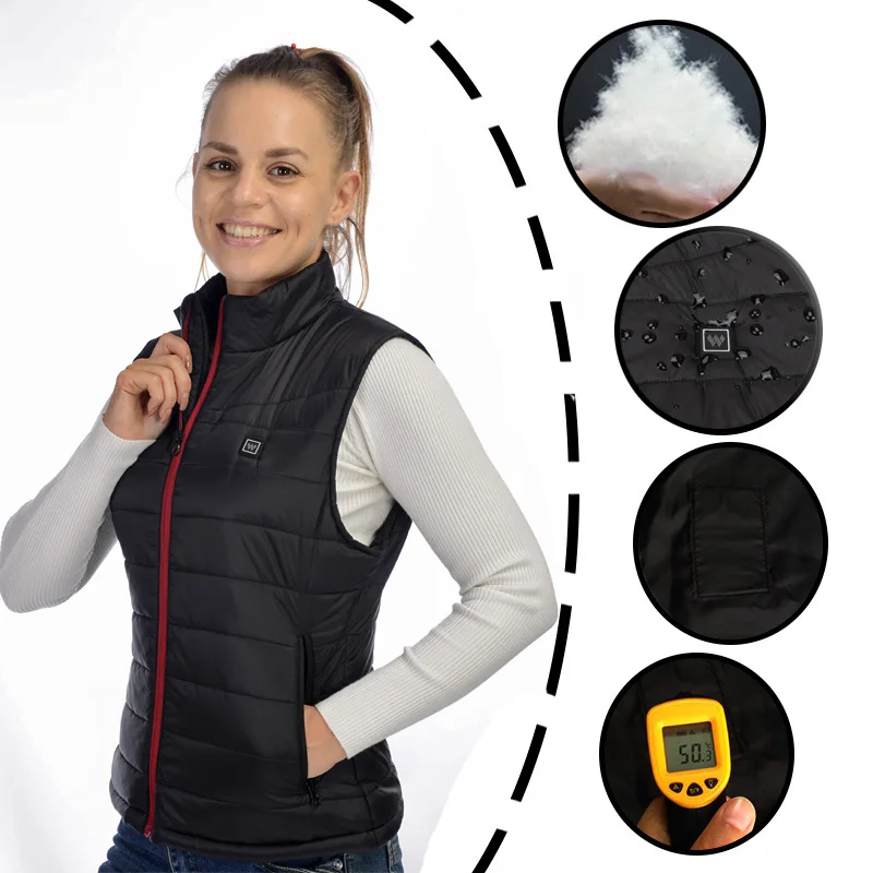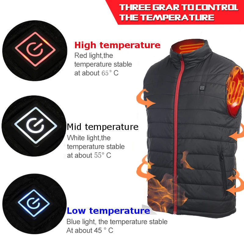 Комфортное ношение с изысканным материалом* Крошечная грелка с подогревом жилета с гибким и моющимся персонажемНет никакой разницы в любой другой элегантной одежде.* Эффективная конструкция с подогревом делает жилет с электрическим подогревом быстро нагревается дажеВ очень холодную погоду.* Высокая, средняя, низкая температура может быть выбрана при использовании. Этот жилет с подогревомДизайн на молнии с карманом для телефона