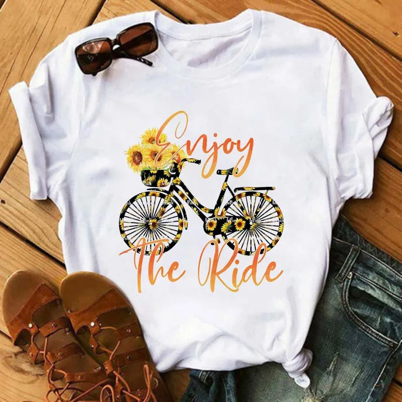 Футболка женская с принтом велосипеда и подсолнуха, Повседневная бе...
