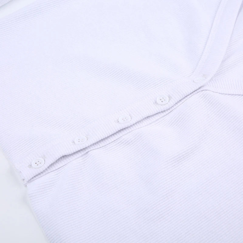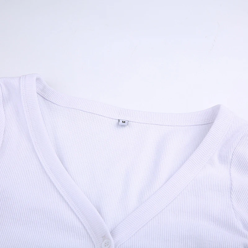 GAOKE, v-образный вырез, Harajuku, футболка с длинным рукавом, женский укороченный топ, хлопок, простые белые футболки, кнопка, Сексуальная футболка, майка, осень