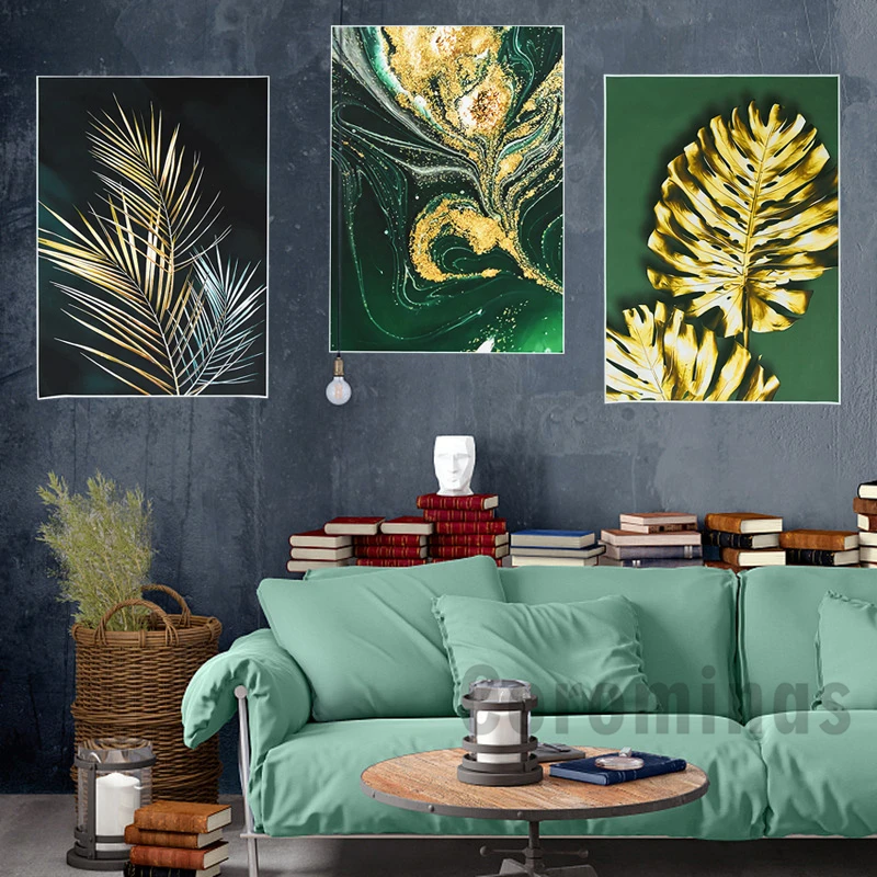 Постер на холсте с золотыми листьями, настенный художественный прин...