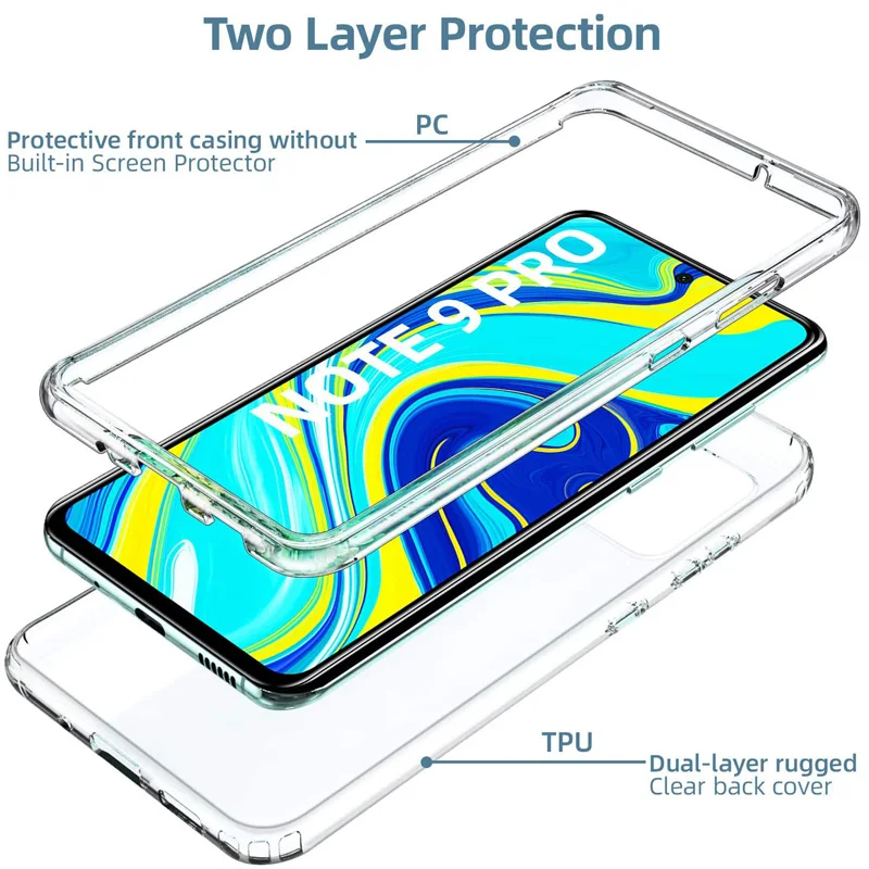 Двойной чехол с полным покрытием 360 градусов для Xiaomi Poco F3 M3 X3 F2 PC + TPU прозрачный чехол для Redmi 9T 9C NFC 9AT 8A Redmi Note 9T 8T 9S 9 8 Pro
