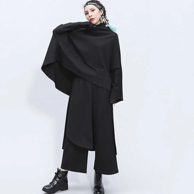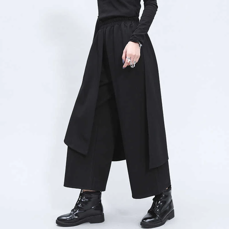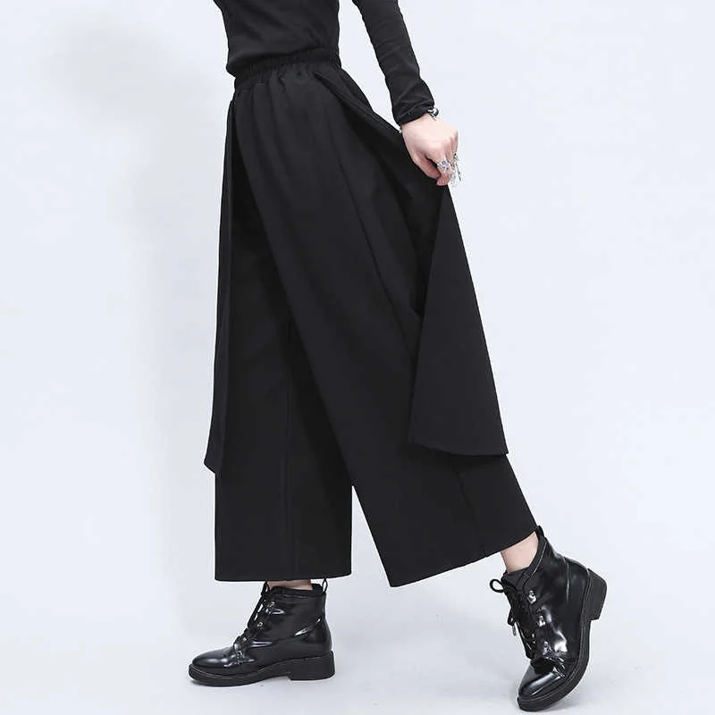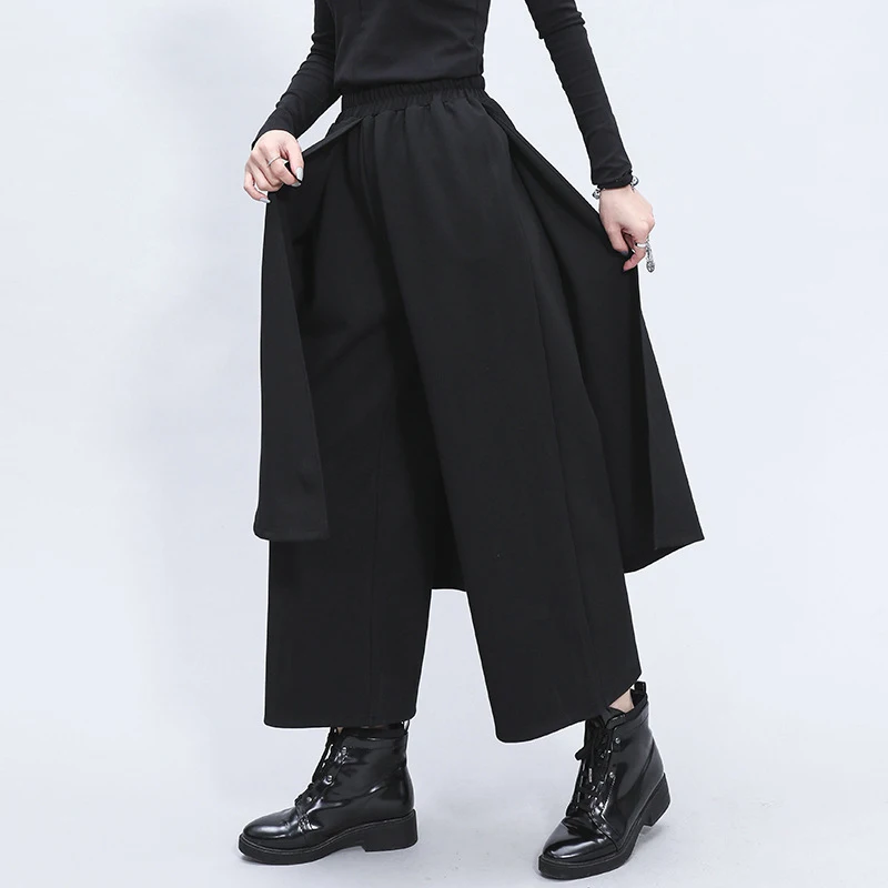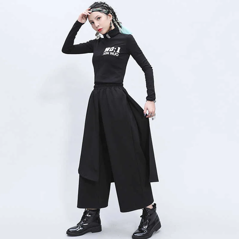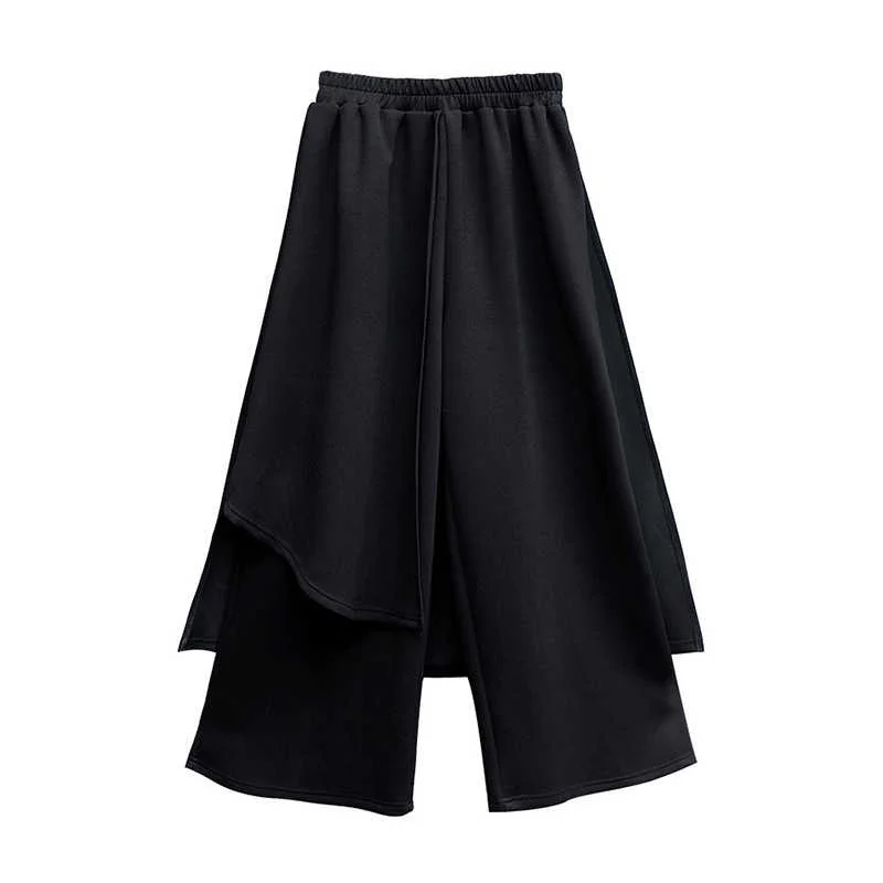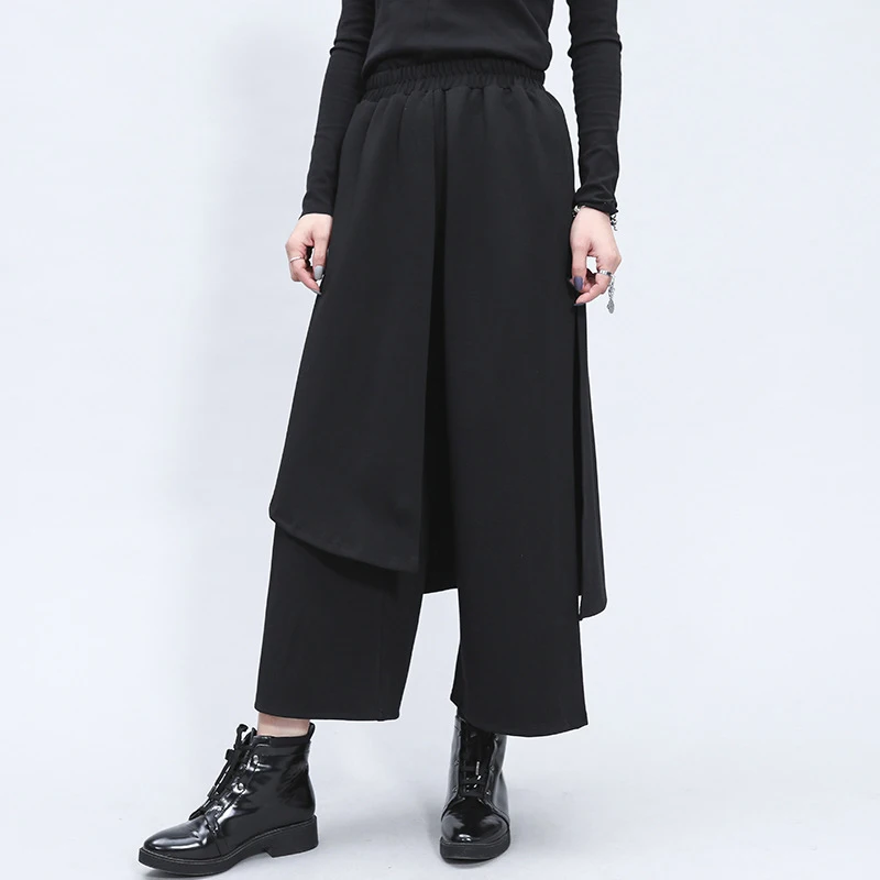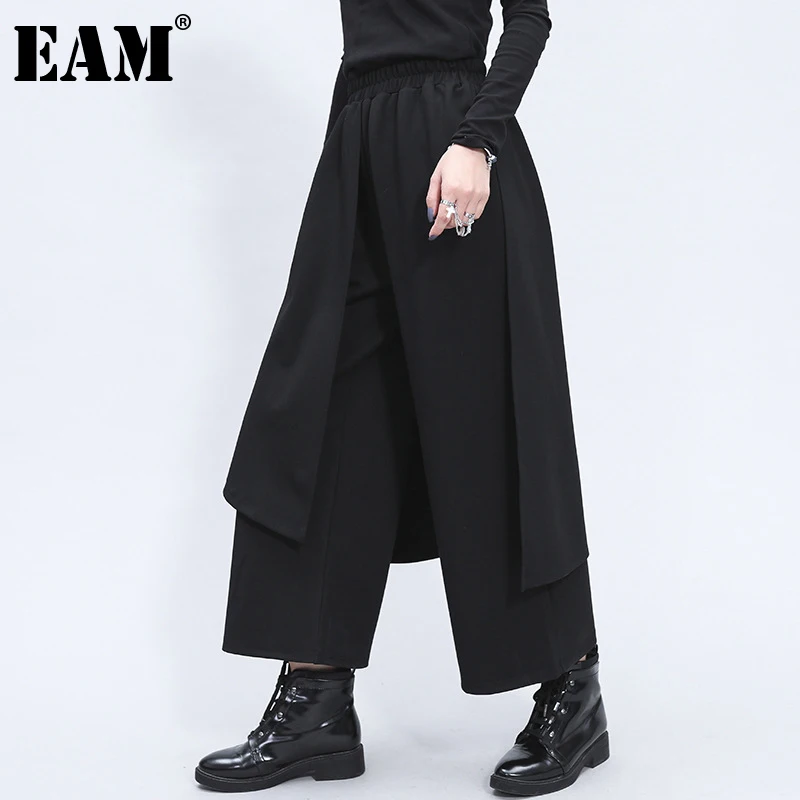EAM черные широкие брюки с высокой эластичной талией, с разрезом, новые свободные брюки для женщин, модные демисезонные 2022 1Z325