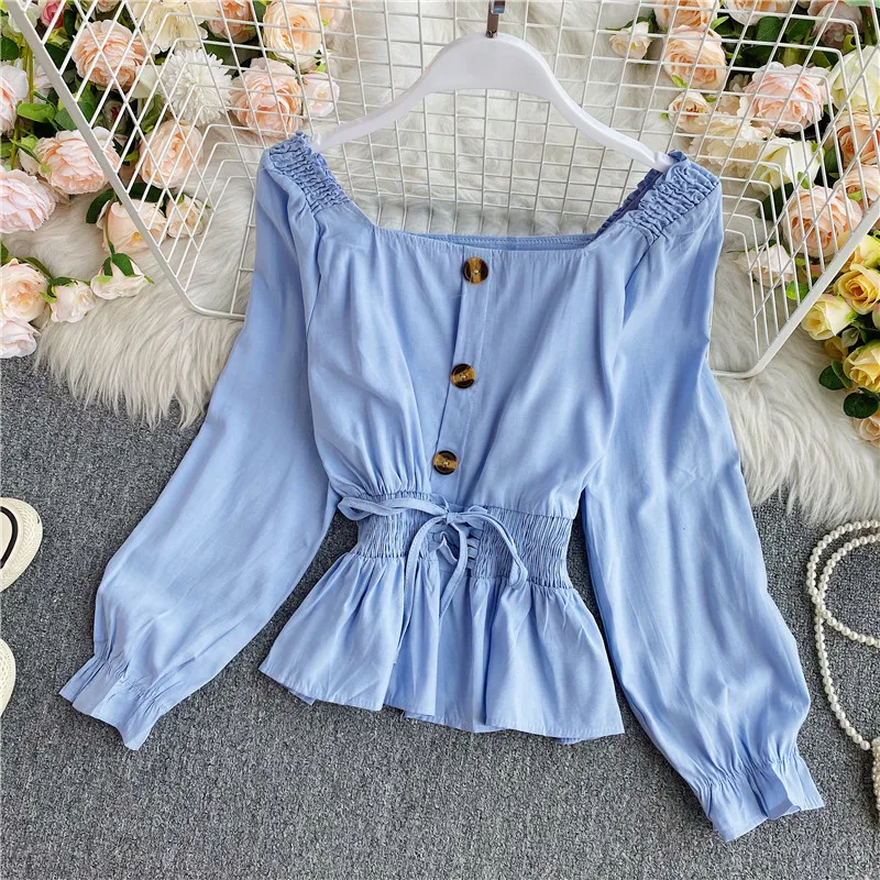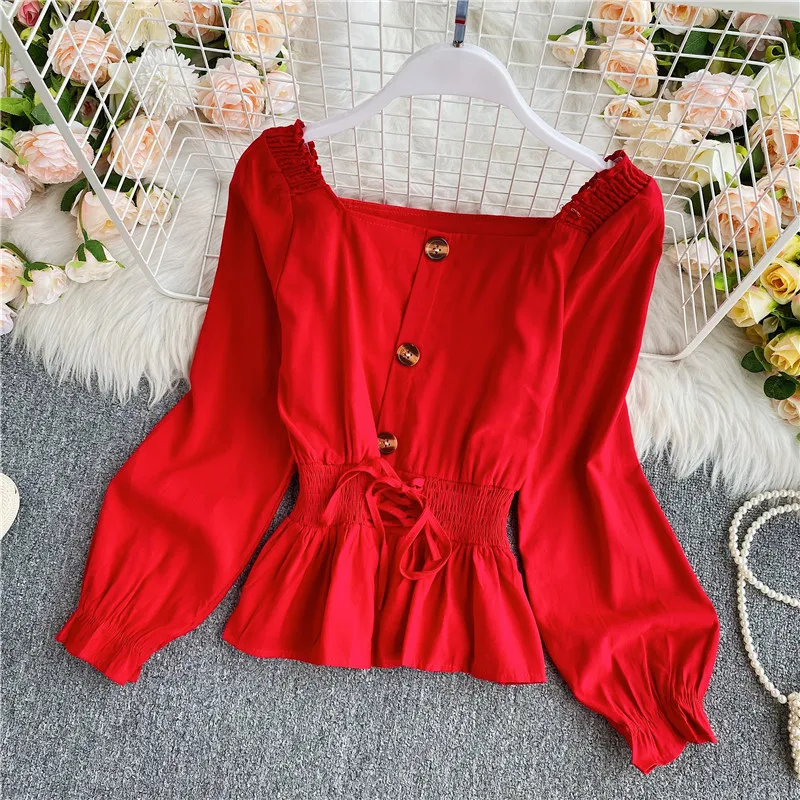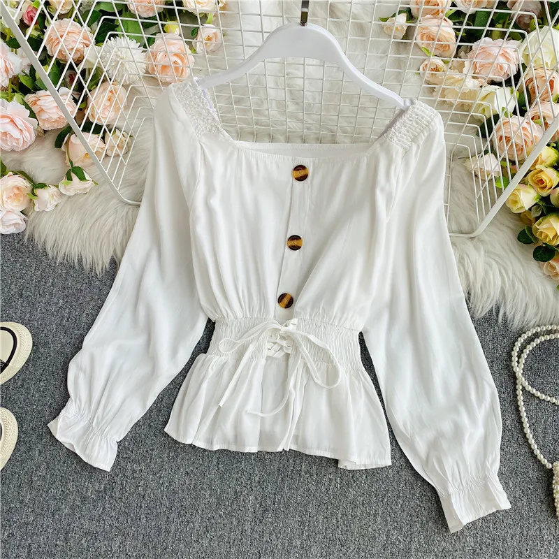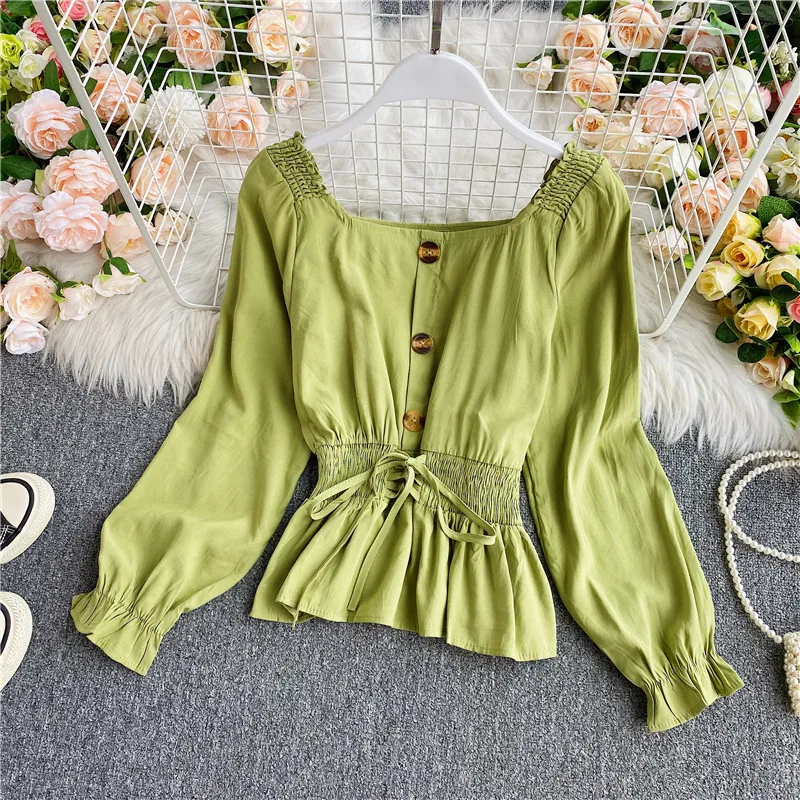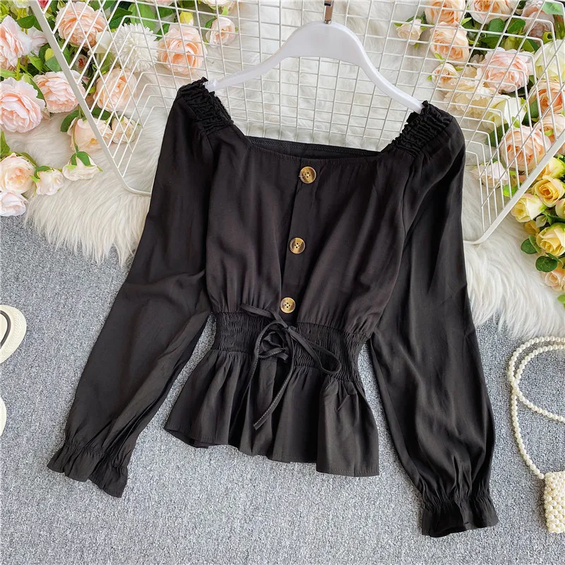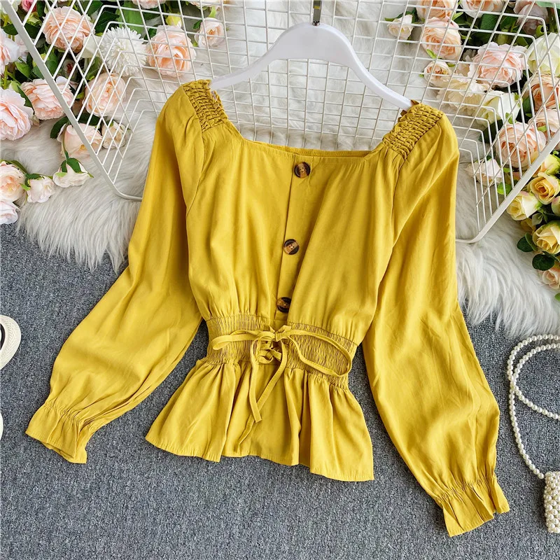 Наименование товара: Весенне-осенняя женская блузка в Корейском стиле с квадратным воротником, французская рубашка с длинными рукавами, новая короткая женская блузка с талией, топы LL891