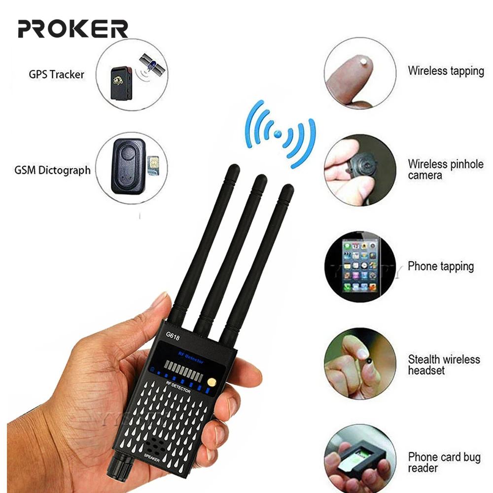 Детектор Proker с 3 антеннами, антишпионский детектор сигнала RF CDMA для телефона, GPS-трекер, беспроводная скрытая камера, подслушивание G618