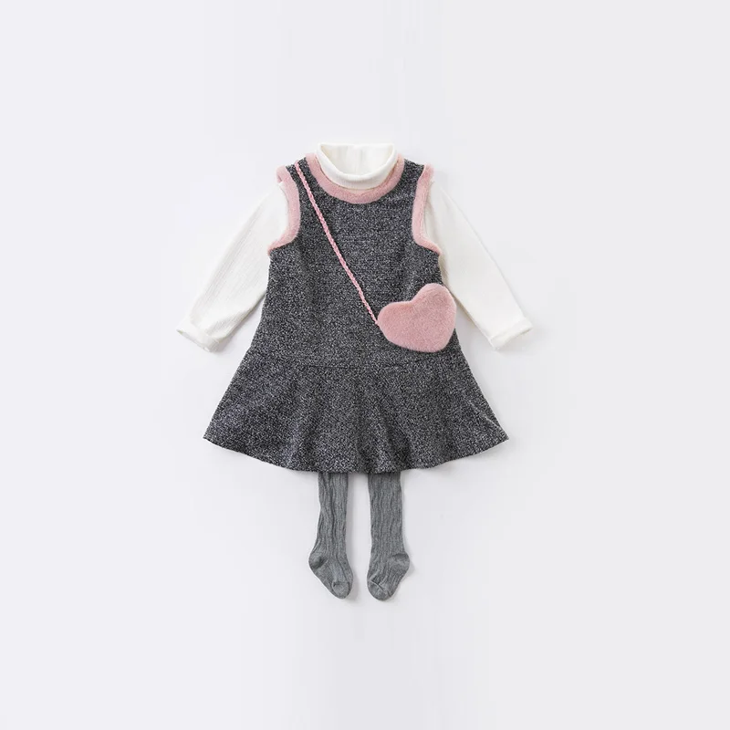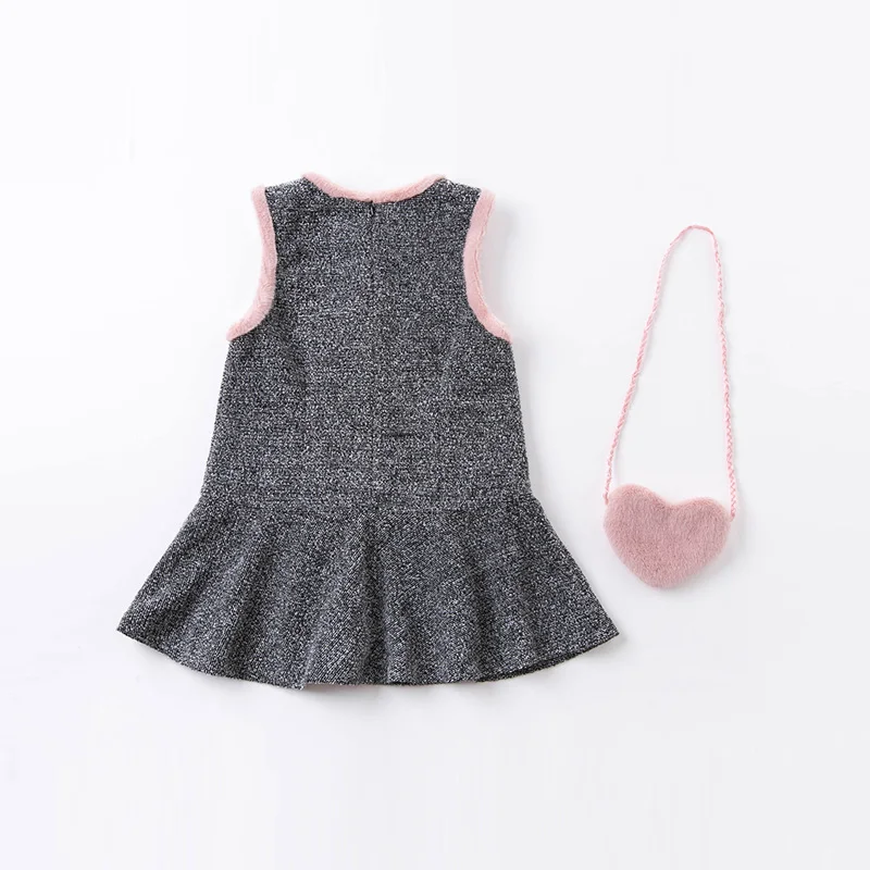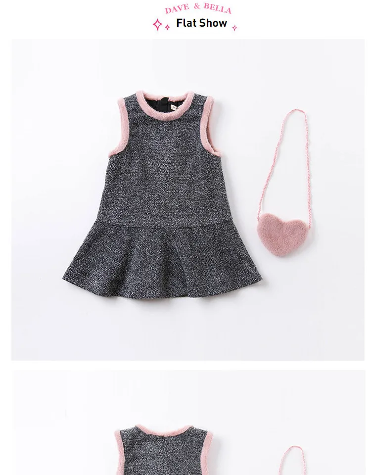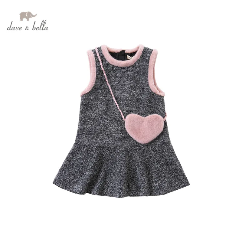DKH15162 dave bellaзимнее модное однотонное платье с маленькой сумкой для девочек; Детское милое платье; Детская одежда в стиле Лолиты; Комплект из 2 предметов