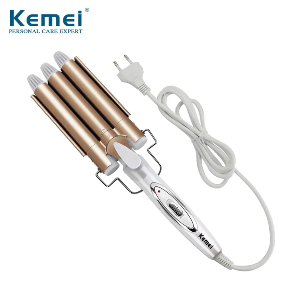 Профессиональные щипцы для завивки волос KEMEI, керамический стайлер с тремя бочками, инструменты для укладки волос, электрические бигуди