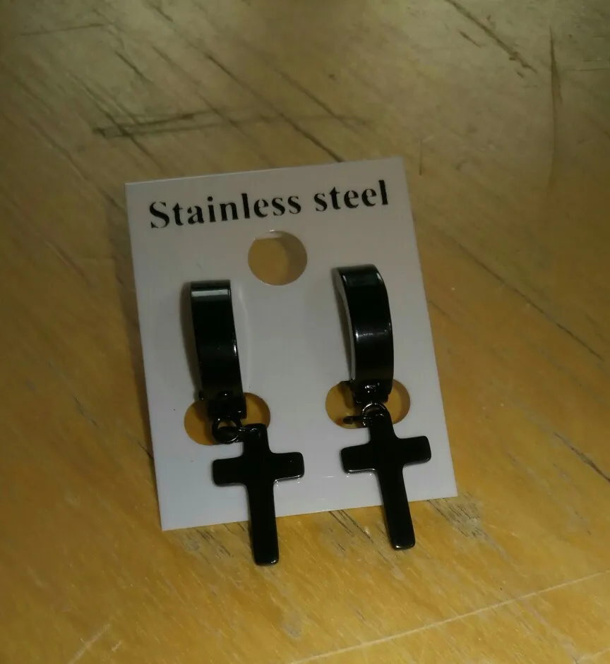 Серьги женские из нержавеющей стали, с крестом, 1 пара, 2 цвета, серьги, Надеваемые На ушной хрящ