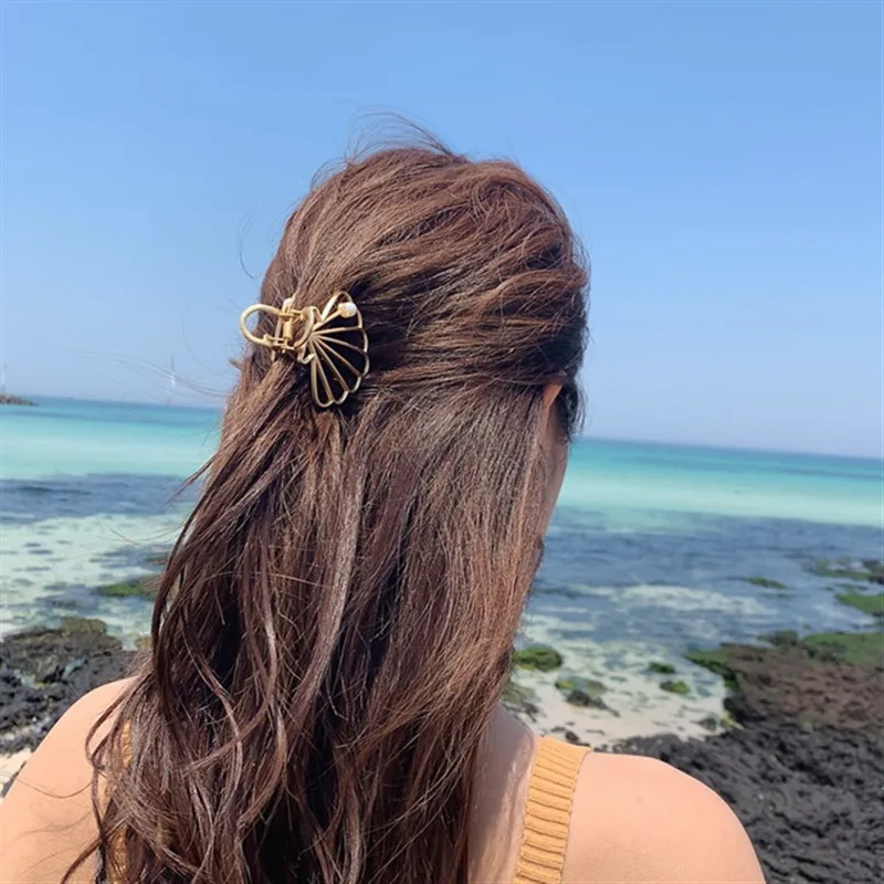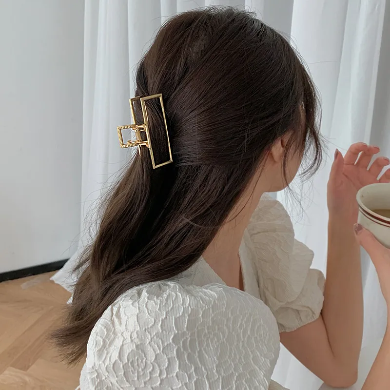 Заколка-зажим для волос HUANZHI, металлическая, в стиле ретро, с геометрическими узорами, с цветами, большая, для женщин и девочек, 2020