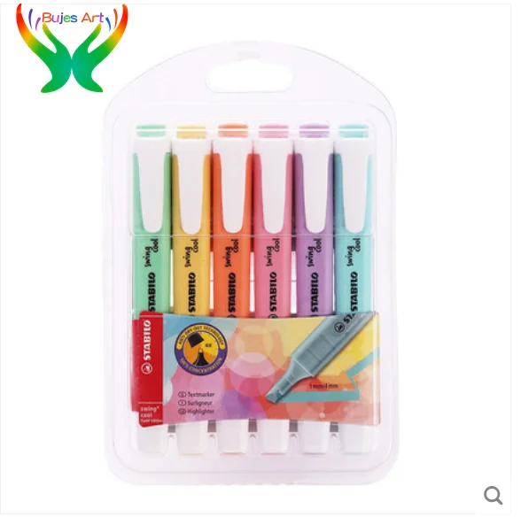 Stabilo 6 цветов флуоресцентная ручка для студентов Макарон Цветная маркировка контур ключевые точки популярсветильник ый цвет товары для рукоделия