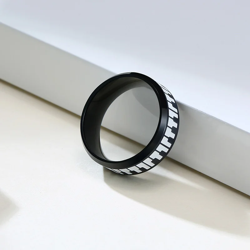 Уникальное кольцо для клавиатуры для мужчин, музыкальное пианино из нержавеющей стали с плоским профилем, двухтонное кольцо