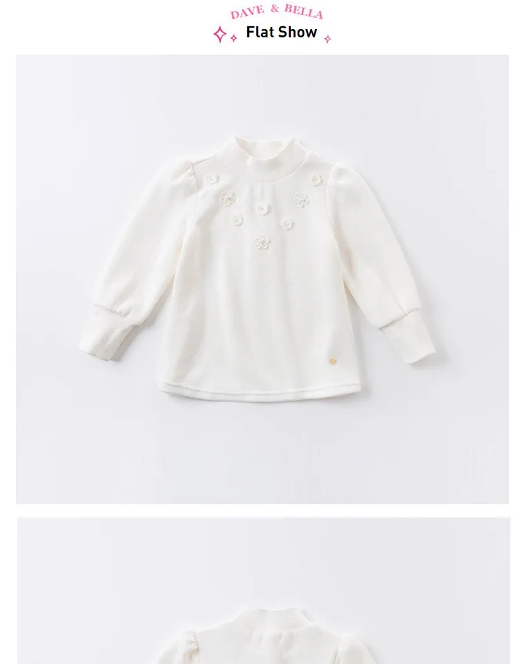 DKH15165 dave bellaзимняя От 5 до 13 лет детская одежда детская модная футболка с цветочной аппликацией модные футболки высокого качества для девочек