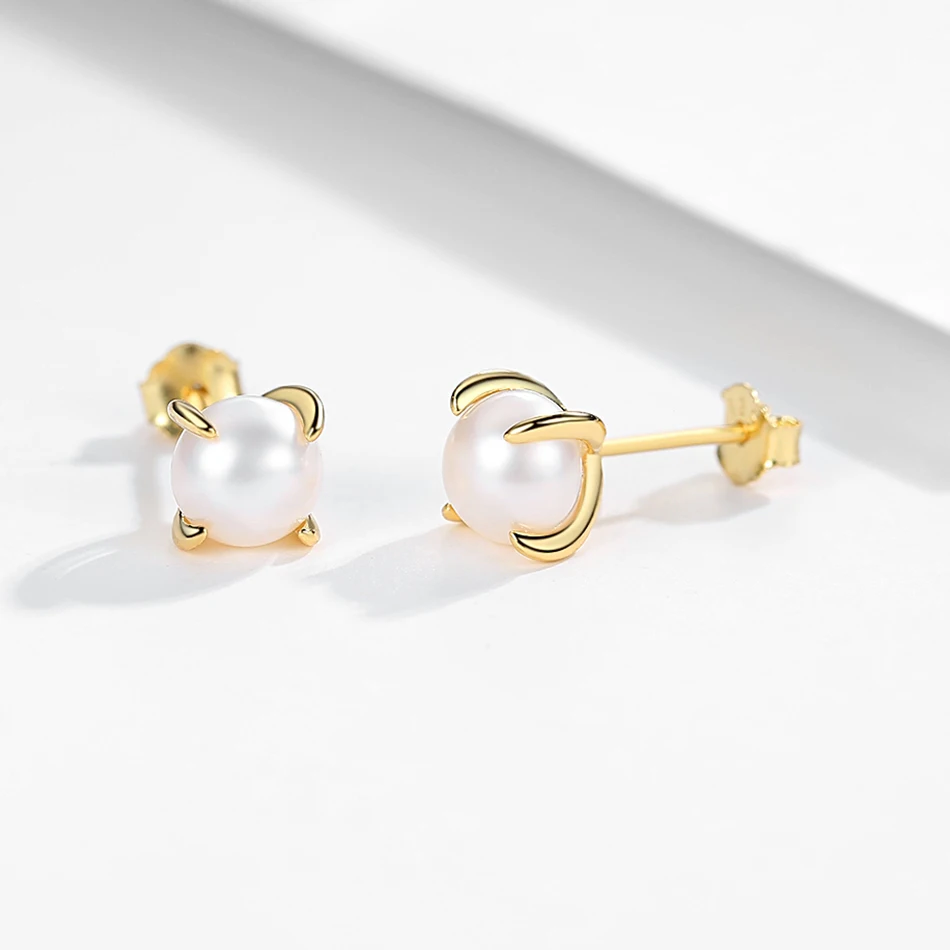 Женские серьги-гвоздики из серебра 925 пробы с натуральным пресноводным жемчугом