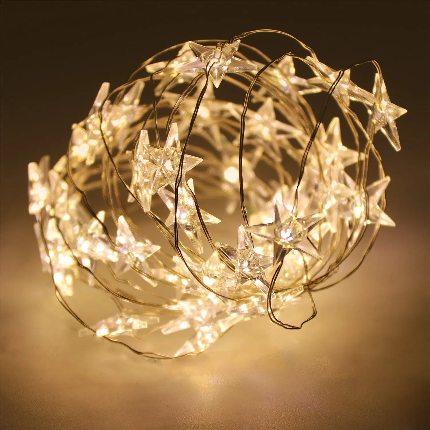 Гирлянда светодиодная в форме звезды с медным проводом, 203040 свет...