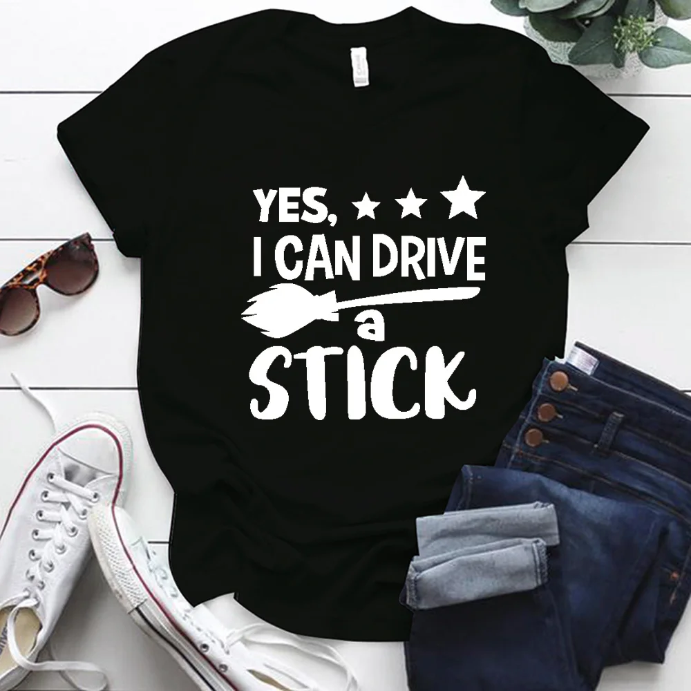 Футболка для Хэллоуина, с принтом Да я могу управлять палочкой, забавные женские футболки с коротким рукавом, S-5xl