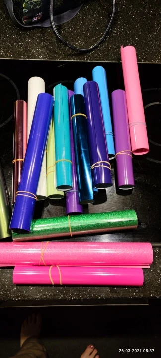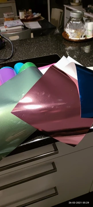 Я проверил все цвета, но только сине-фиолетовый. Он очень красивый и выглядит хорошо. Он не очень растягивается, но достаточно, чтобы быть гибким на ткани. Изменение цвета немного деликатное, но оно видно. Я нажал на него при температуре 150 °C около 20 секунд, и он выглядит хорошо. Я помыл его горячим (60 °C) случайным образом, и никаких проблем не было. :) Но я всегда хотел бы помыть его в холодной воде (30 °C), чтобы быть в безопасности. Продавец общается быстро, когда я спрашивал о температуре и времени нажатия. Я рекомендую изменить цвет HTV и закажу, вероятно, больше (сначала придется продавать мои продукты) Прилагается изображение перед стиркой и после :)