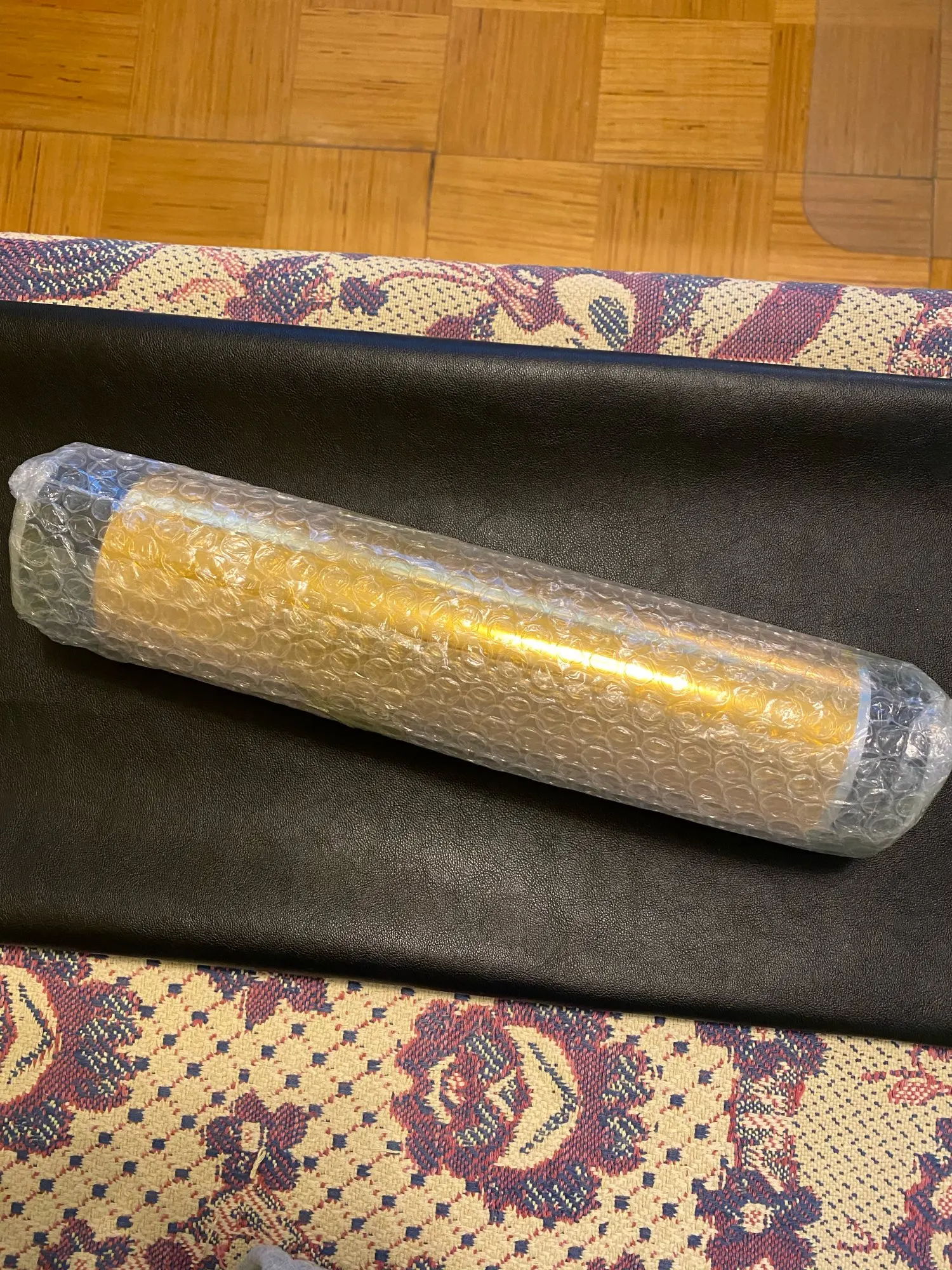 Товар прибыл очень быстро и, кажется, хорошо упакован. На виниловой основе есть небольшие удары в линии вниз посередине, которые могли бы возникнуть во время транспортировки. Цвет действительно приятный