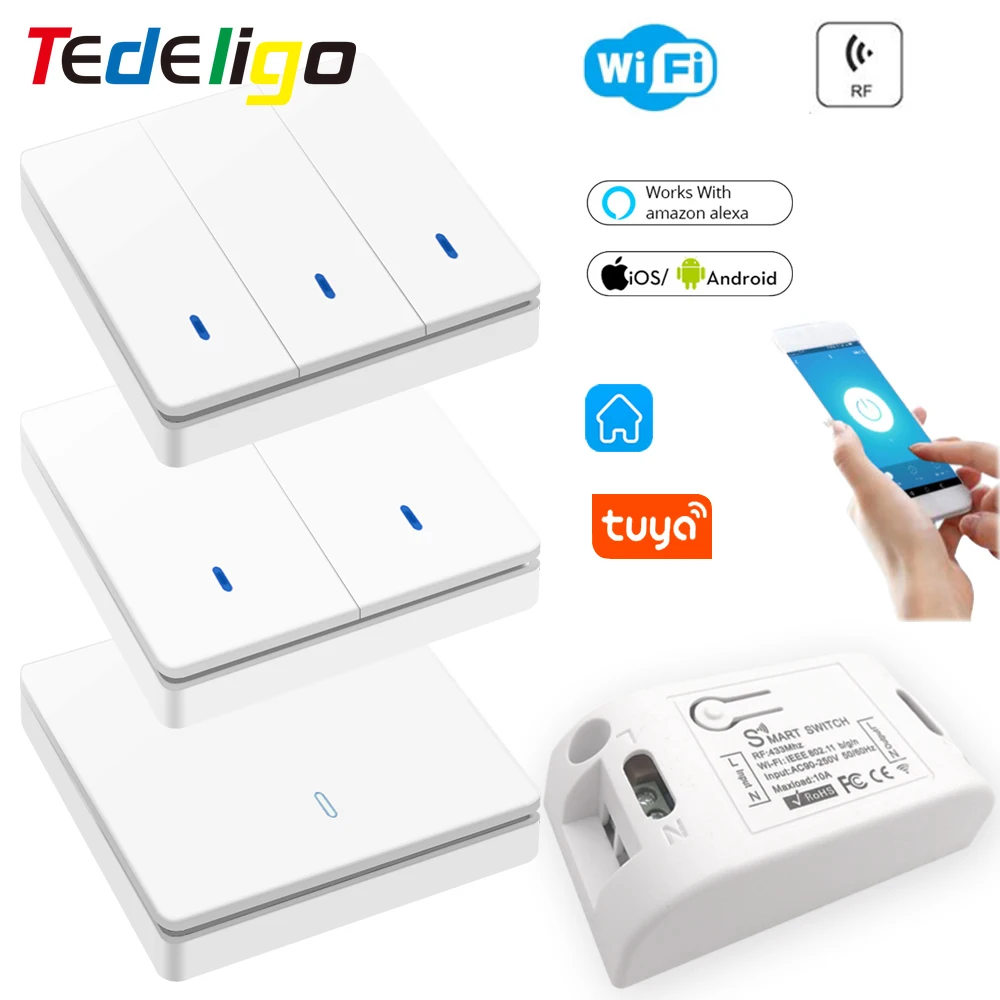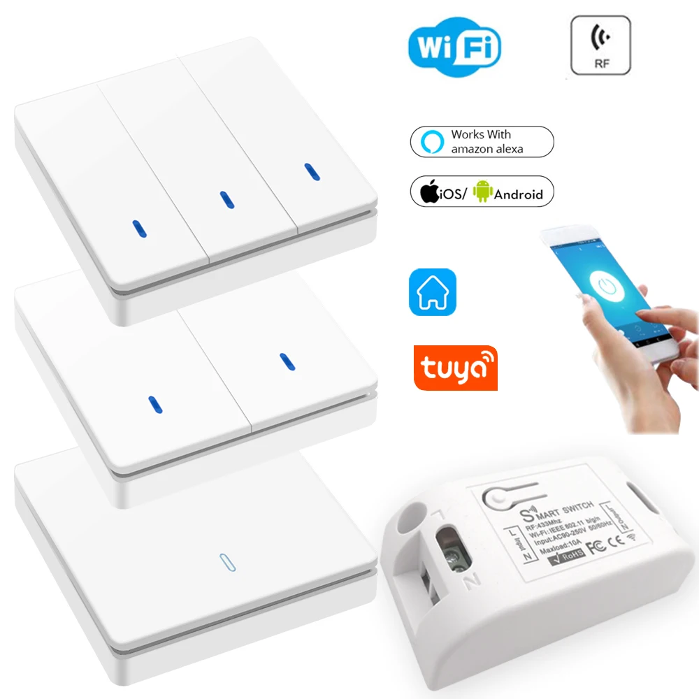 Wi-Fi/RF 433 МГц AC 110V 220V контроллер 1/2/3 Gang кнопочный переключатель освещение для семьи работать с Tuya Smart Life Google Home Amazon Alexa