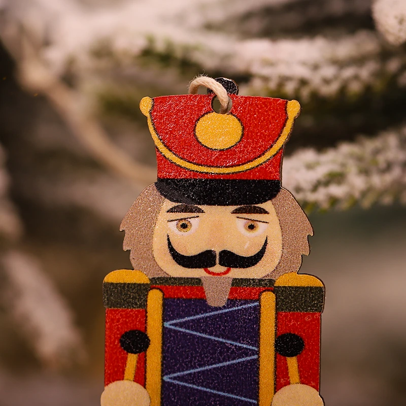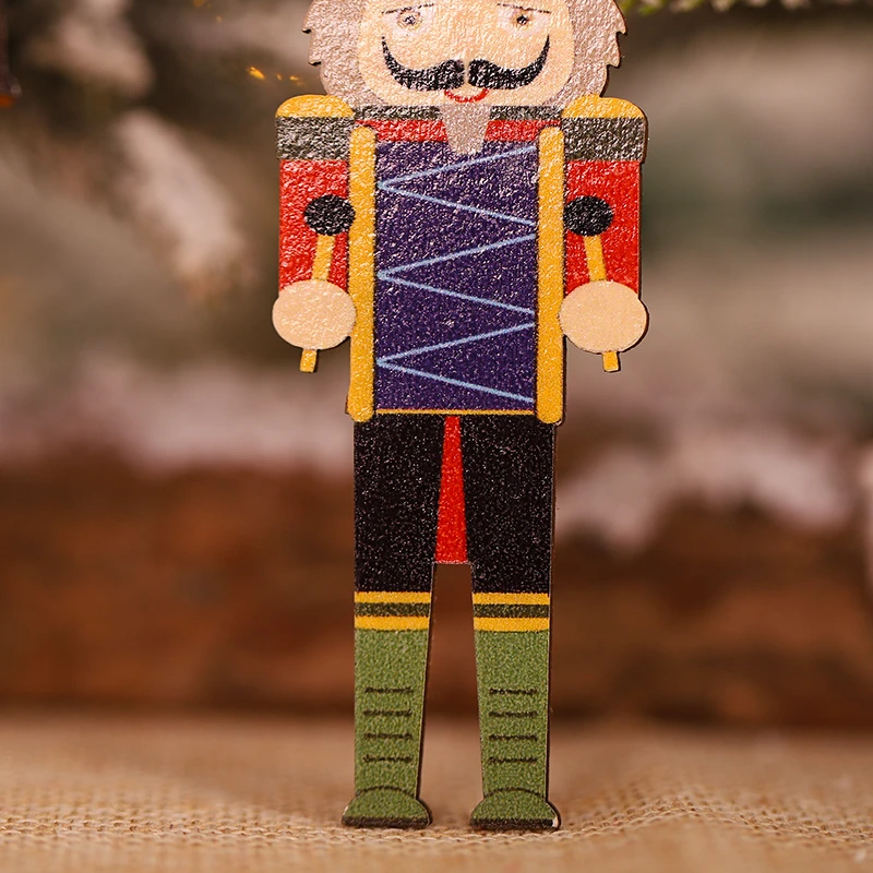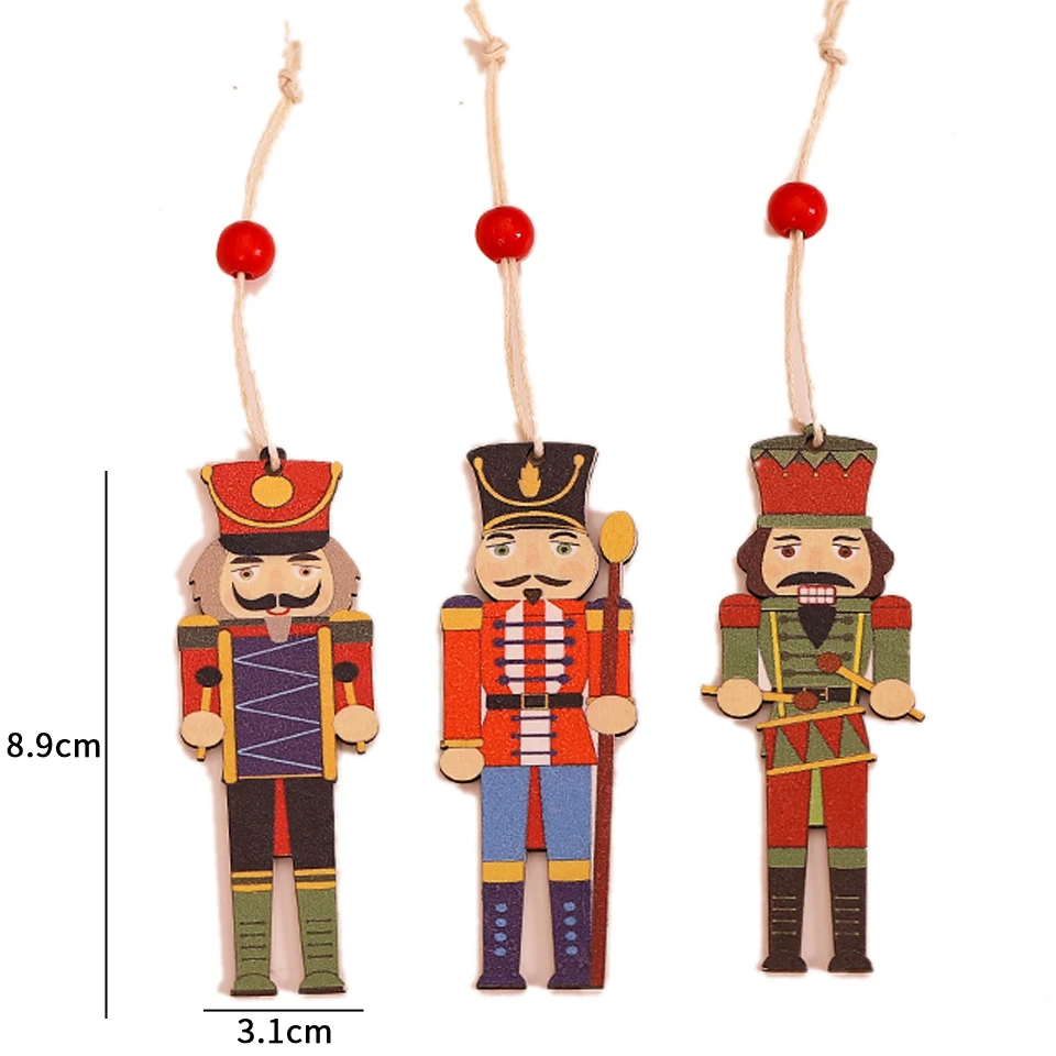 9pcs/set Walnut Soldier Pendant Nutcracker Puppet Zakka Christmas Wooden Ornaments DIY Color Printed Xmas Tree Decoration