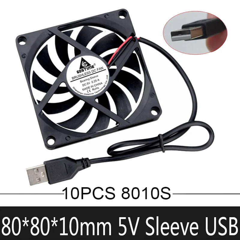 10 шт.лот Gdstime 80 мм USB 5 в 80 мм x 80 мм x 10 мм 8 см 8010 шт. бесколлекторный осевой вентилятор охлаждения постоянного тока
