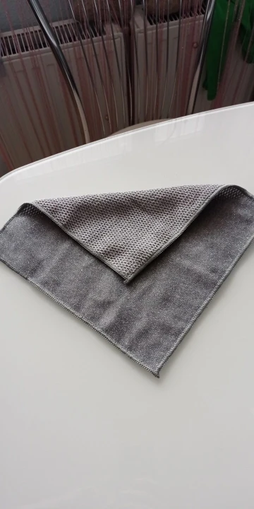 Пришла в объединенной посылке за месяц до МО. Тряпочка очень необычная для меня. С одной стороны петельки как капроновые, которые очень хорошо оттирают капельки жира на стене за плитой без химии. Стираю со средством для мытья посуды вручную. Отжимается не насухо, поэтому поверхность остаётся влажной долго, нужно дополнительно вытирать другой тряпкой. Салфеткой очень довольна, к покупке рекомендую.