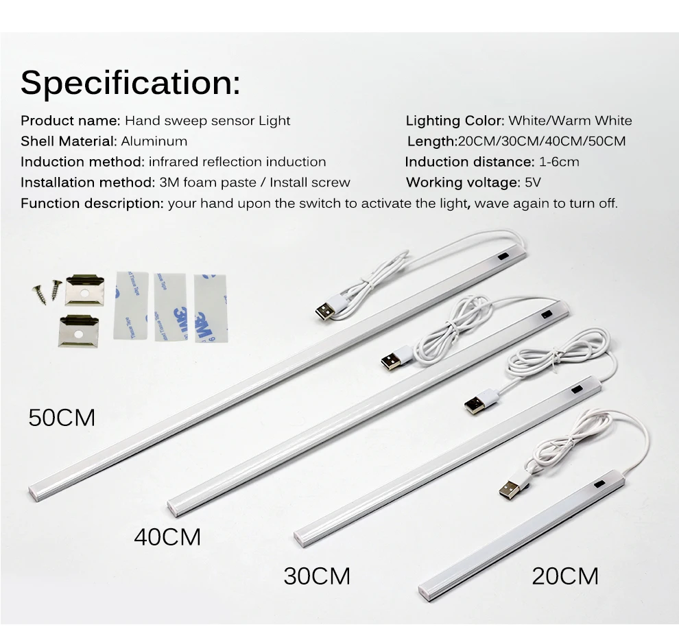 Умный Светодиодная трубчатая лампа светодиодный светильник с ручным волновым сенсором, 5 в постоянного тока, энергосберегающая Диодная панель с высоким люменом, ночник для Кабинета