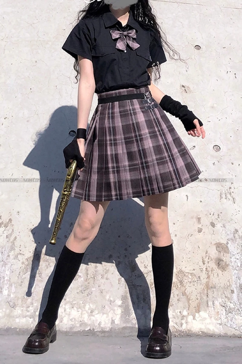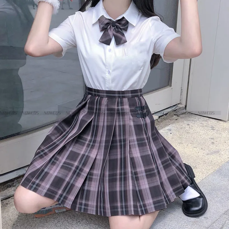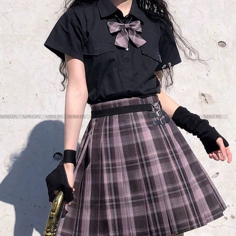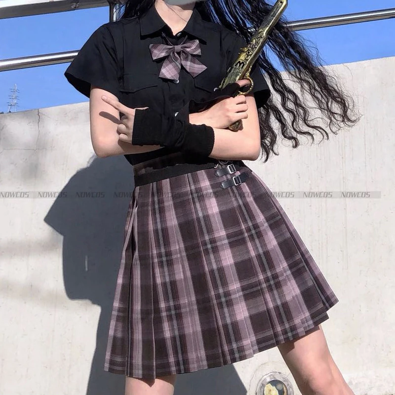 Женская плиссированная юбка Song of the night, клетчатая юбка с короткимидлинными рукавами и высокой талией, платье для школьной формы JK для студентов