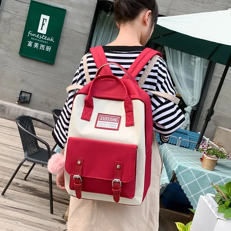 Рюкзак женский тканевый, для девочек-подростков, 5 предметов, 2021,...