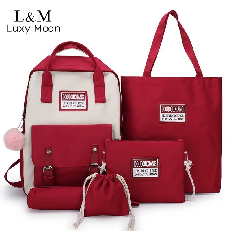 Набор из 5 шт., женский рюкзак и школьная сумка для девочек-подрост...
