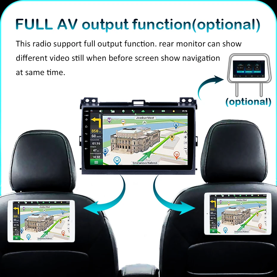 Полная функция вывода AVЭто Радио имеет полную функцию выхода AV (опционально), эта функция принесет много удовольствия детям и вашей семье, которые находятся на заднем сиденье в долгом путешествии. Они могут смотреть телевизор, фильмы, мультфильмы, видео на Youtube, мВ и другие видео. На рынке большинство торговых радиостанций не имеют функции выхода AV.