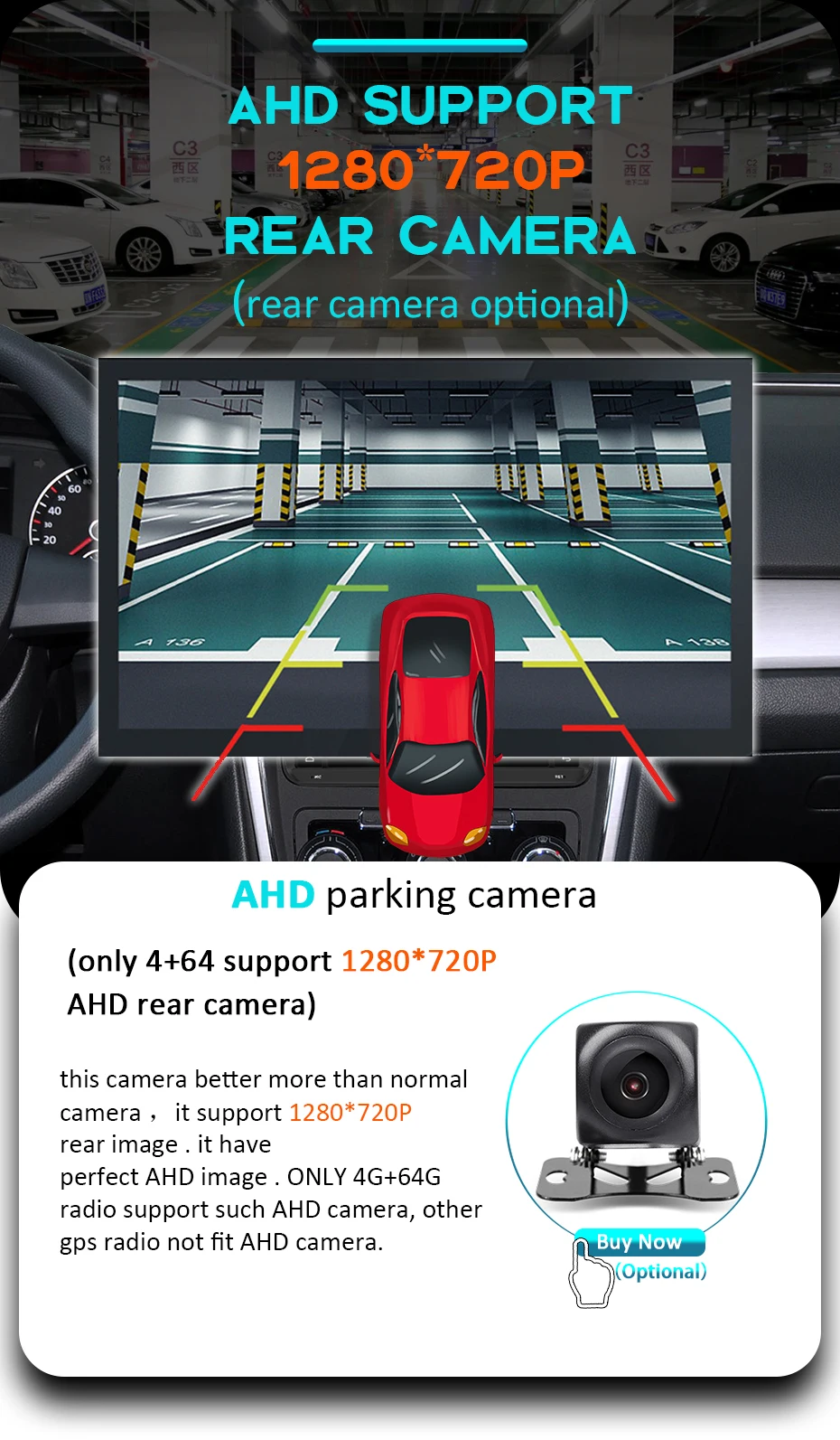 AHDВ нашем магазине все 4G + 64G радиоприемники поддерживают AHD 1280*720P камеру, эта камера является дополнительной функцией, если вам это нужно, вы можете нажать ниже фото и купить его вместе с радио