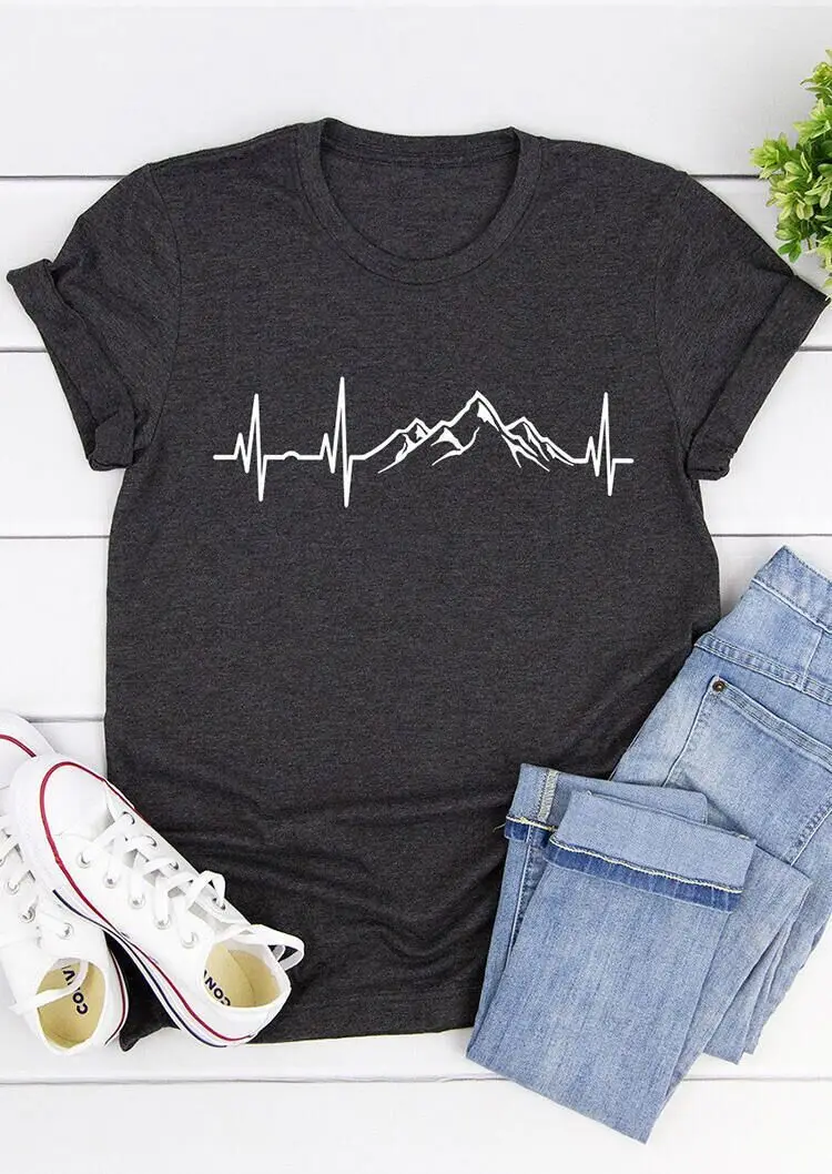 Женская футболка из 100% хлопка, футболка с принтом сердцебиения, женская футболка с коротким рукавом, женские топы, одежда, рубашки