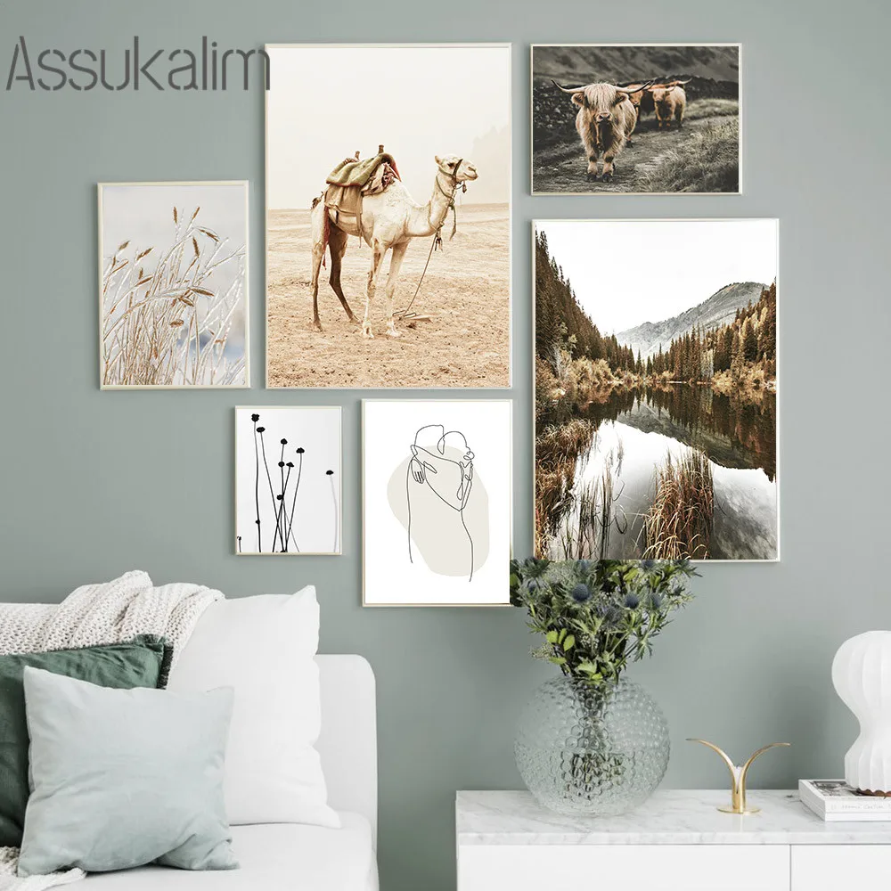 Настенные картины с природным ландшафтом, постеры с цветами, сеном,...