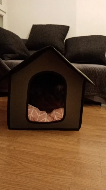 Классный домик для маленьких питомцев! Я заказал большой. Еще не проверили, действительно ли он водонепроницаемый. Я заказал его для своей кошки, и там много места для нее внутри. Для собаки подойдет маленькая собака... Определенно не большой. Я думаю, что это отлично подходит для кошек!