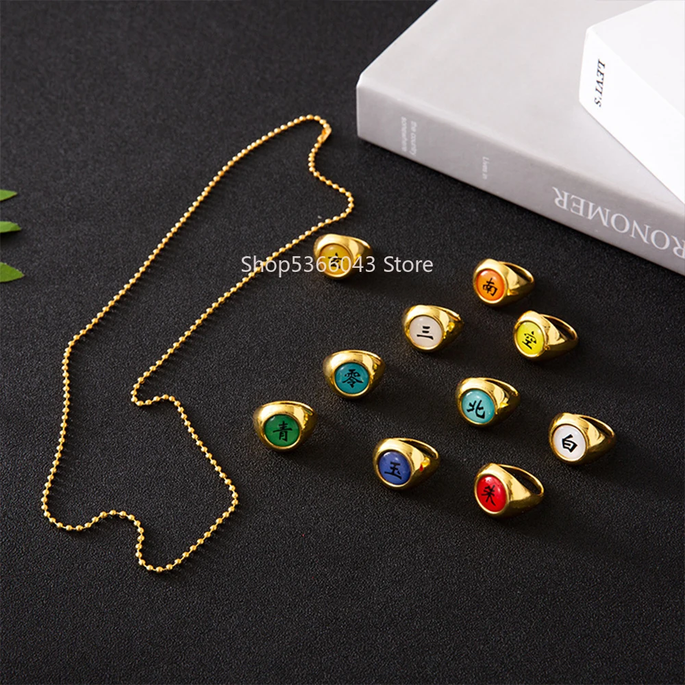 Кольцо в стиле аниме для косплея, золотоесеребряное кольцо ниндзяс, металлическое кольцо на палец, реквизит, подарок на Хэллоуин, 10 стилей
