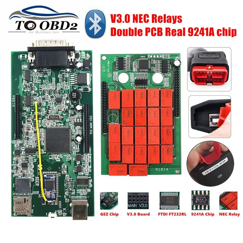 Автомобильный диагностический сканер с чипом TCS PRO 2017.R3 V3.0 NEC Реле OBD2 Real 9241A, автомобильный диагностический сканер TCS pro с двойной печатной платой с чипом зендера