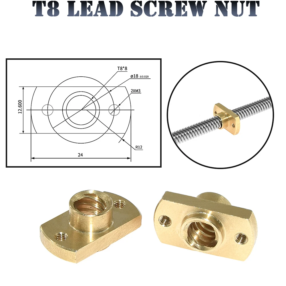 Свинцовая гайка T8, шаг 2 мм, свинцовая 8 мм, латунь T8 x 8 мм, фланцевая свинцовая гайка для ЧПУ, детали Ender 3 CR-10, аксессуары для 3D-принтера