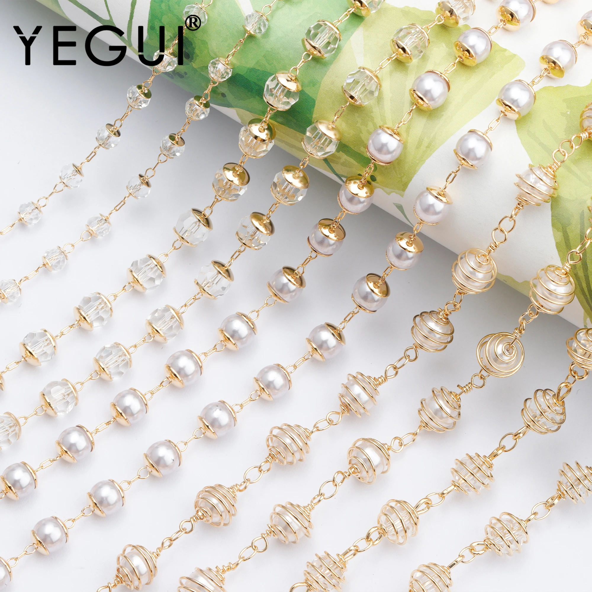 Цепочка для самостоятельного изготовления ювелирных изделий YEGUI C119, позолота 18 карат, 0,3 микрон, циркон, жемчуг, браслет, ожерелье, ручная работа, 1 млот