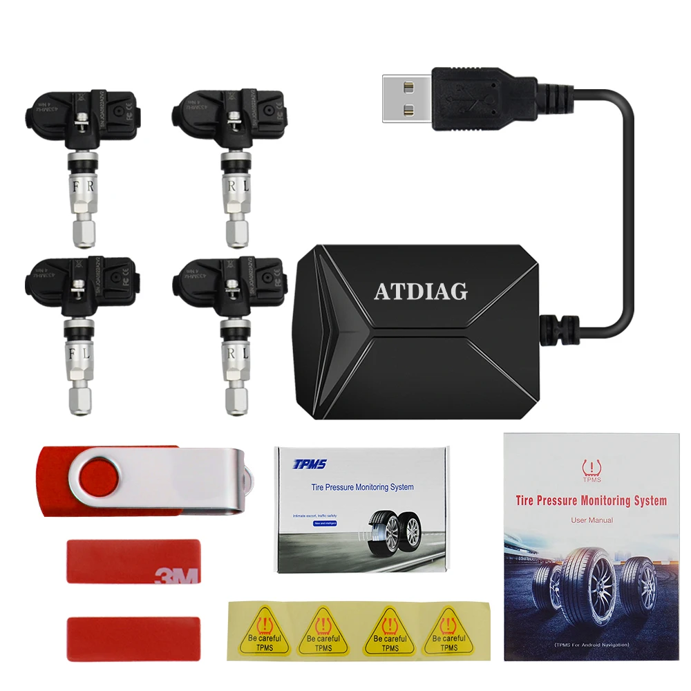 -TPMS для Android навигации: Приемник может подключаться к автомобильному DVD/мультимедийному плееру/gps-навигатору, устанавливать приложение (входит в u-диск) и проверять данные шин на экране, очень удобно использовать